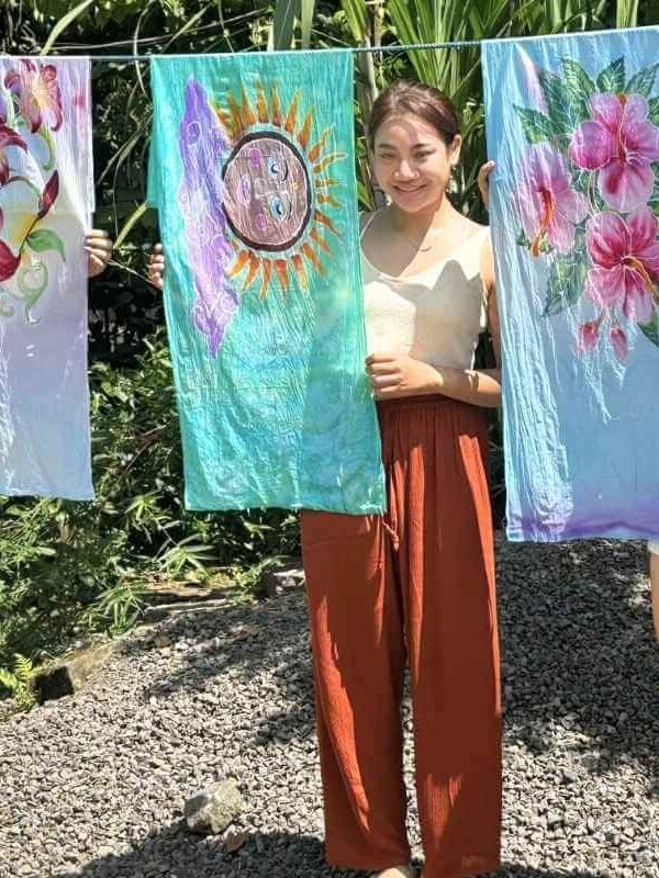 Guided by our highly patient, local Balinese artists, you will connect with a mesmerizing tradition passed down through generations. You will learn the meditative “wax-resist” dyeing process. Feel the magic as you sketch your pattern, carefully apply hot liquid wax using a traditional copper canting pen, and watch the vibrant colors bleed into the fabric to bring your design to life.