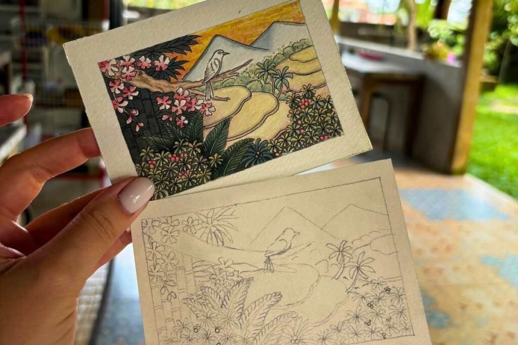 Guided by our skilled, patient local artists, you’ll learn the multi-step technique of creating a world of vibrant color. From the initial pencil sketch to the finest ink outline and traditional color layering, you will connect with a beautiful island tradition. Whether you are an experienced artist or a complete beginner, you will leave with your very own tiny masterpiece—a truly special memory of your time in Bali.